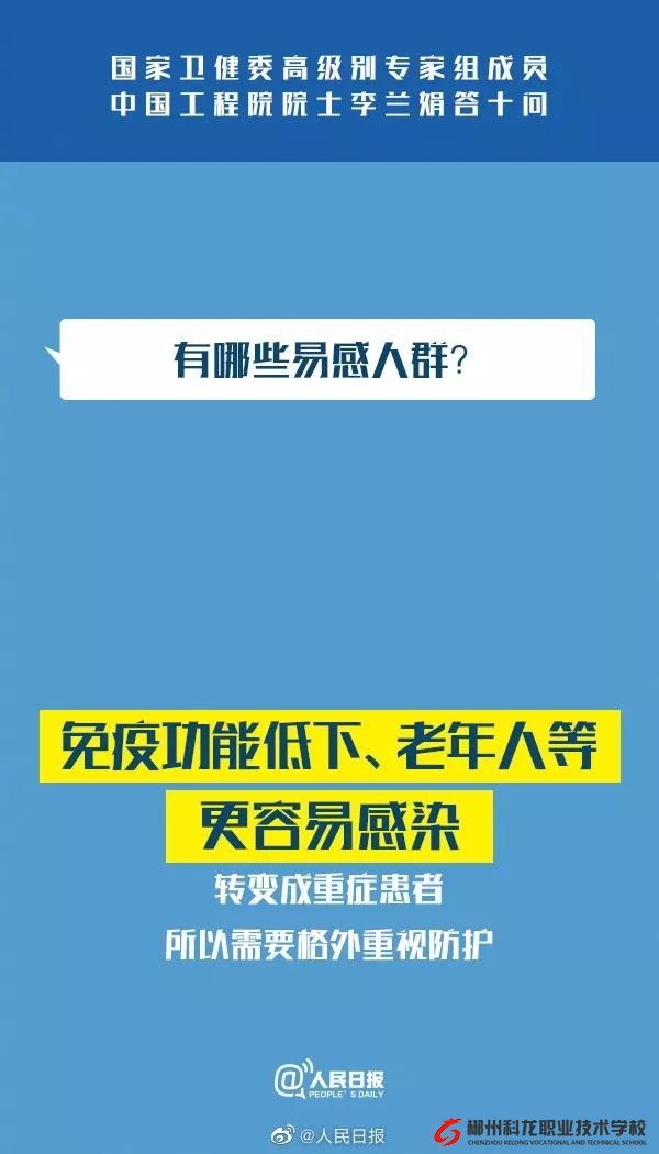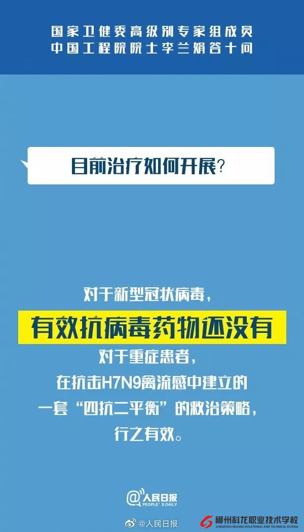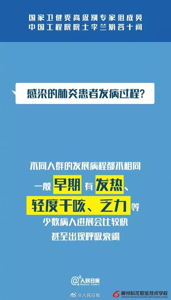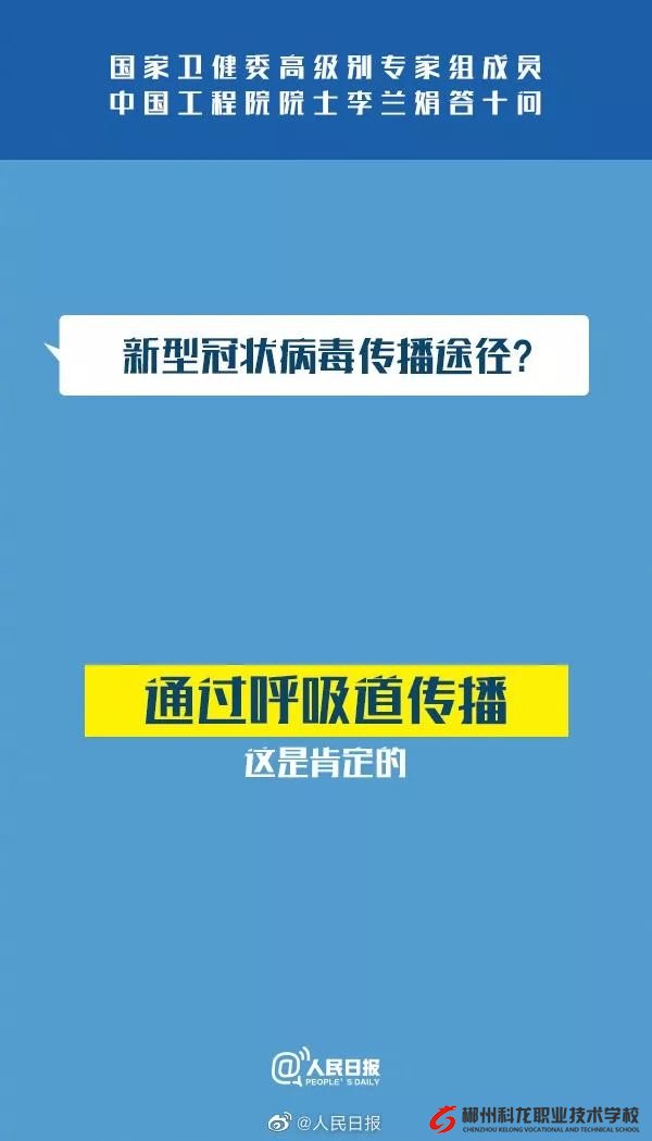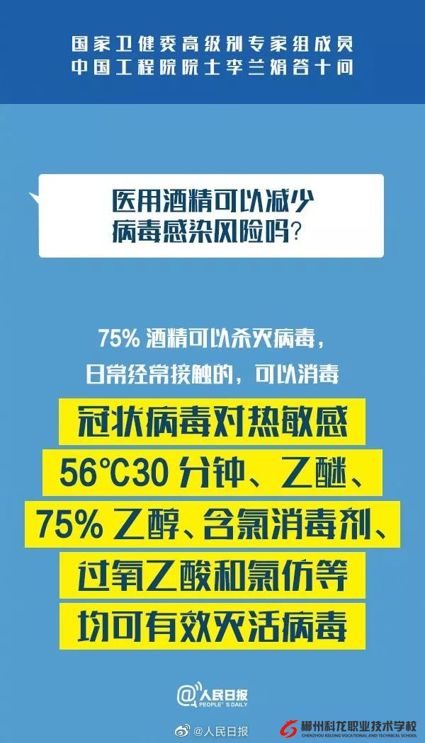 國家衛(wèi)健委專家組成員李蘭娟:新冠肺炎答疑10問 目前治療如何開展?一家人吃年夜飯要注意什么?醫(yī)用酒精可以減少病毒感染風險嗎?…… 國家衛(wèi)健委高級別專家組成員、中國工程院院士李蘭娟解答↓↓ 擴散周知! (責任編輯:郴州市科龍職業(yè)技術學校)