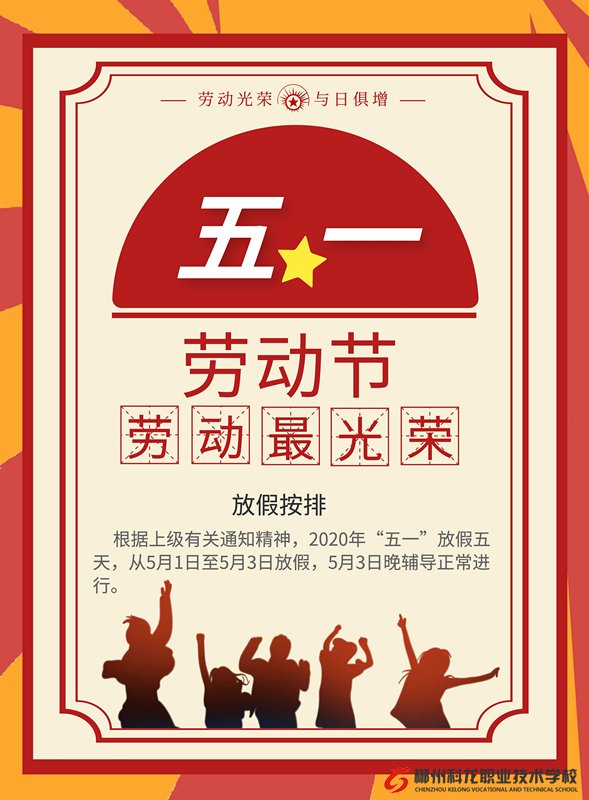 根據(jù)上級(jí)有關(guān)通知精神,2020年“五一”放假3天,從5月1日至5月3日放假,5月3日晚輔導(dǎo)正常進(jìn)行。為了使您的子女平平安安渡過一個(gè)愉快的假期,請(qǐng)你們?cè)诩倨谄陂g配合我校對(duì)該子女做好疫情防控、食品、溺水、消防、交通、法律法規(guī)等安全教育: