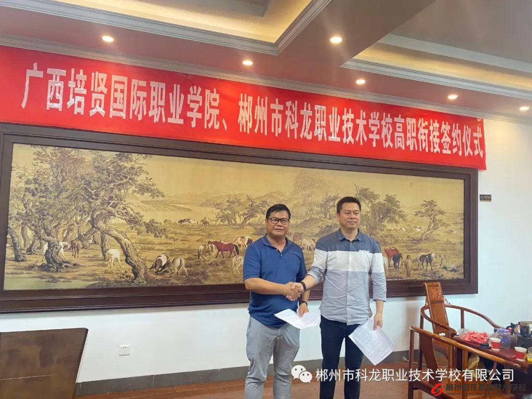 5月26日,廣西培賢國際職業(yè)學院與郴州市科龍職業(yè)技術學校高職銜接簽約儀式在郴州市科龍職業(yè)技術學校舉行,雙方一致同意兩校開展深度合作,在專業(yè)建設、課程建設、教材建設、校企合作和招生宣傳等方面全面銜接,為中職學生升入高職院校就讀提供有利條件。據(jù)郴州市科龍職業(yè)技術學校校董田自輝介紹,就讀該校的學生,在中職階段學習期滿后,通過進行適當考核,經(jīng)考核合格后,獲得轉錄廣西培賢國際職業(yè)學院高職階段繼續(xù)學習的資格,此舉有利于打開中職學生的成長、升學空間。(點擊閱讀原文)