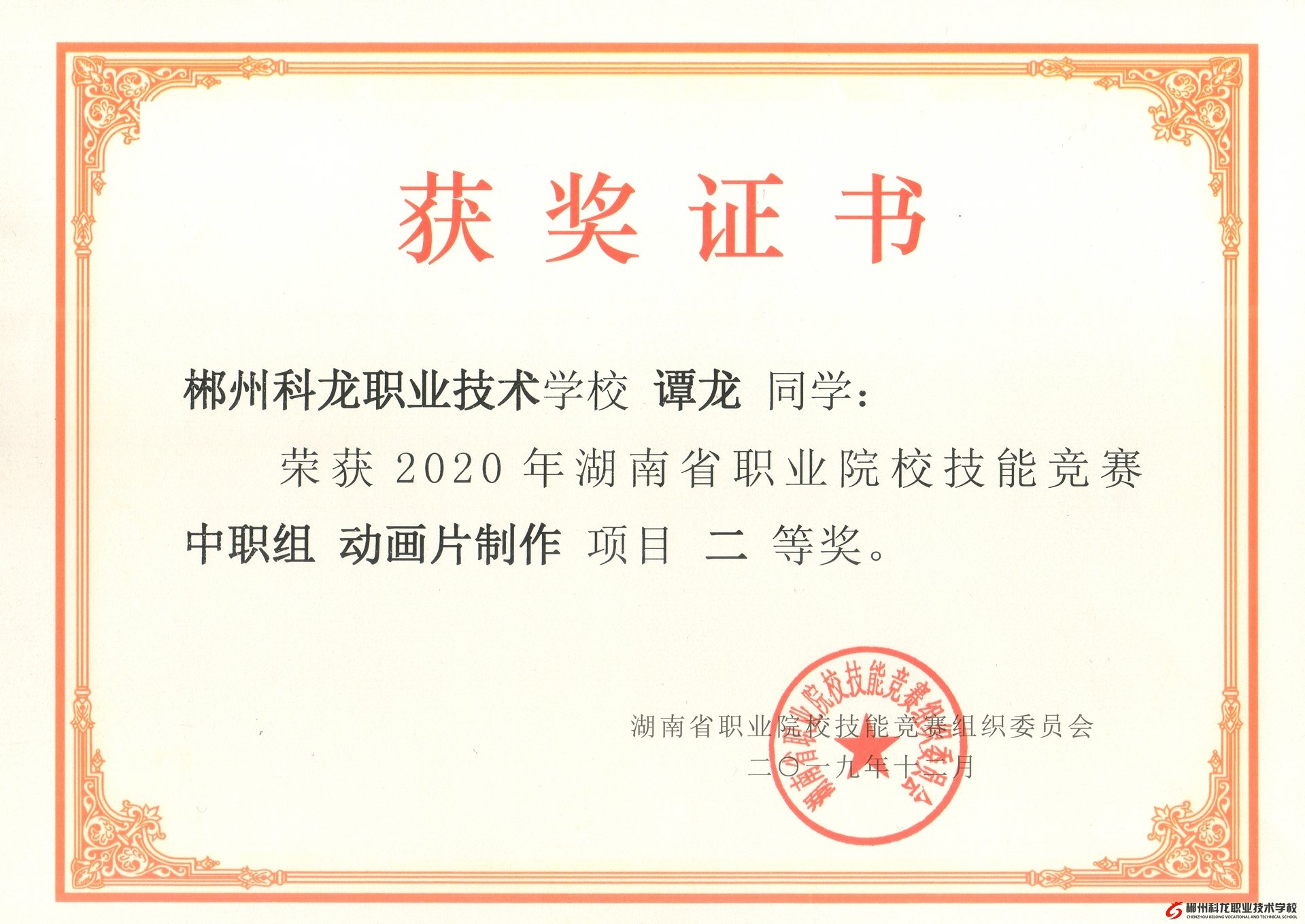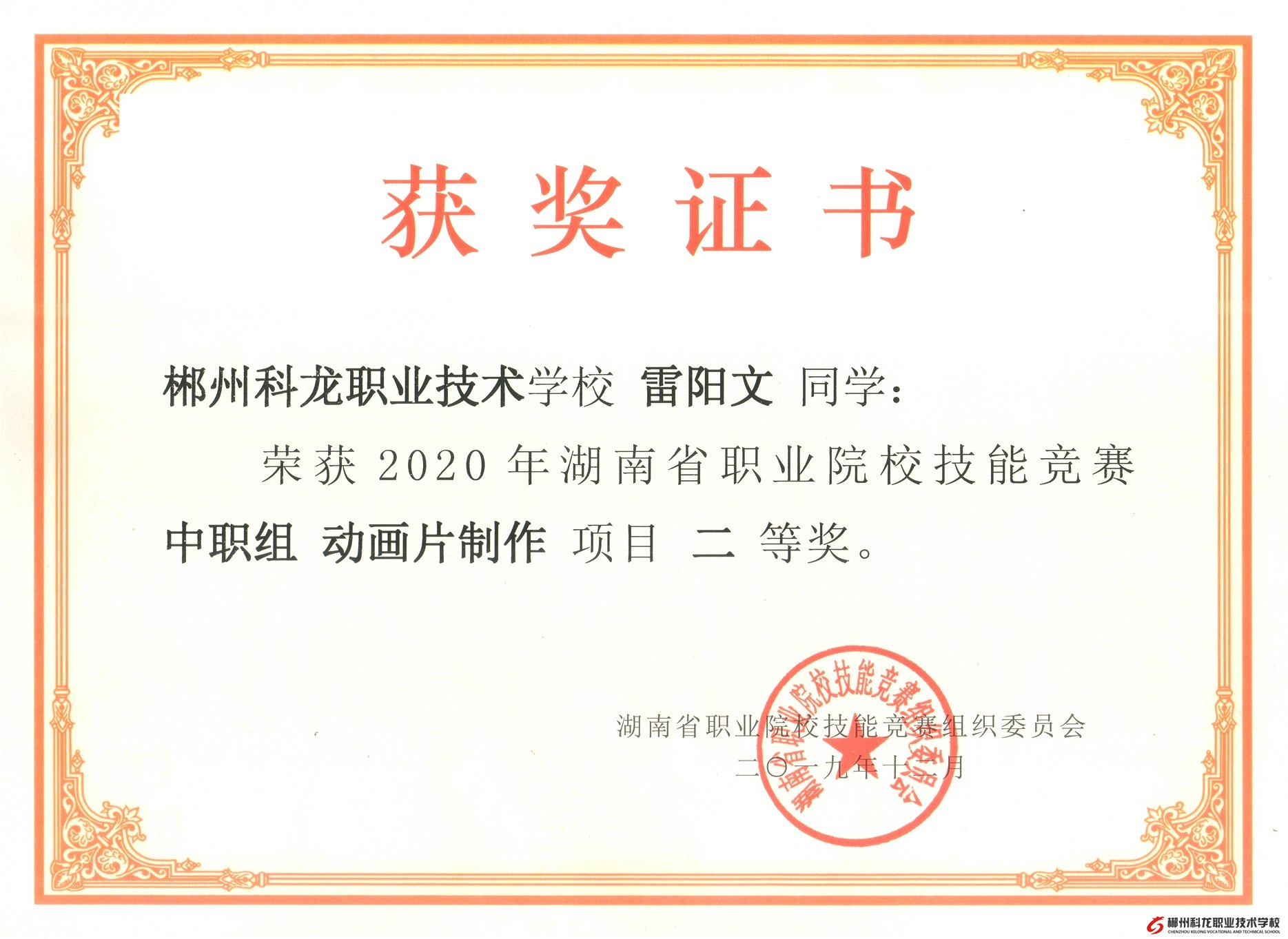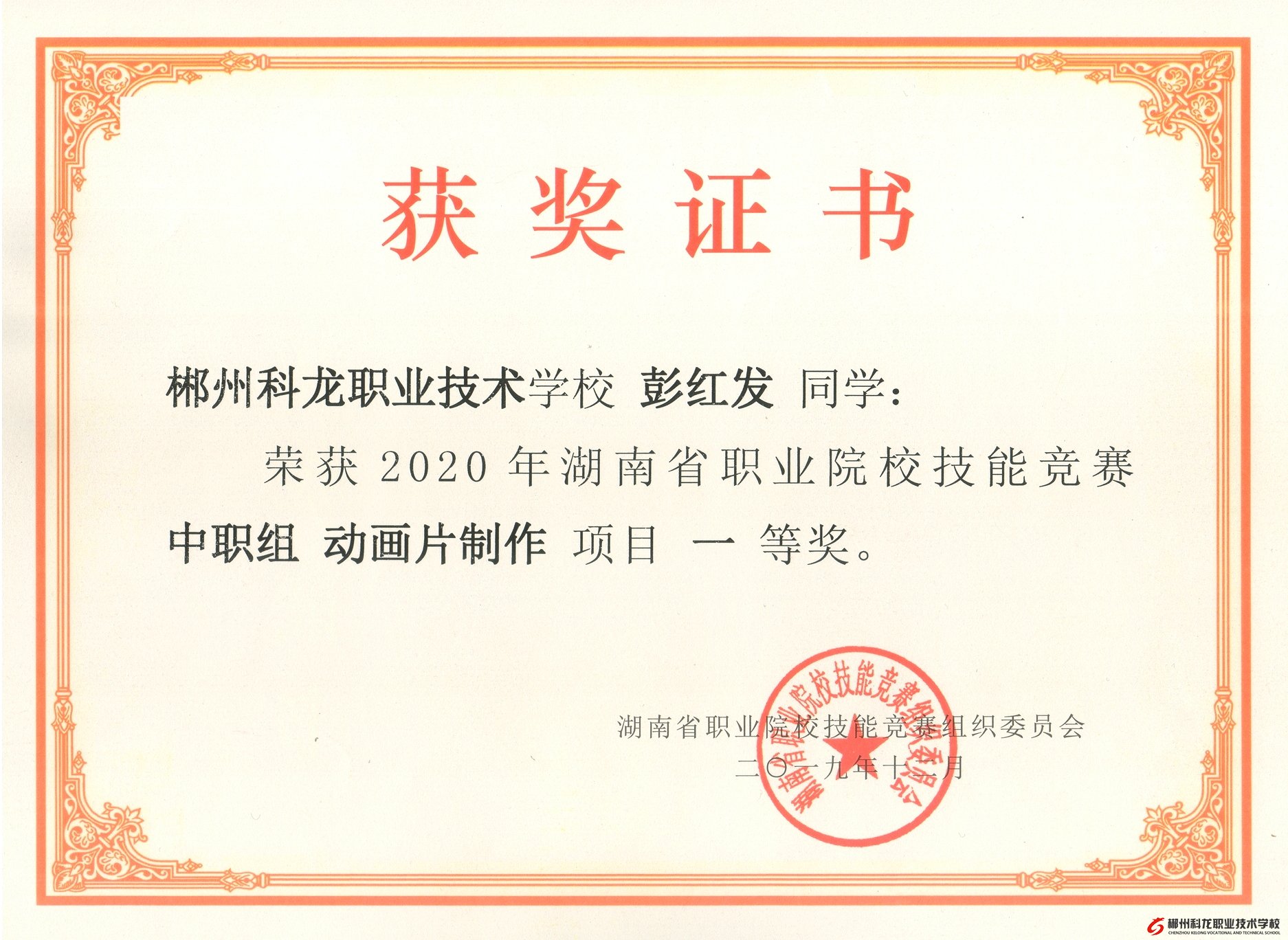 由湖南省教育廳主辦的2020年湖南省職業(yè)院校技能競賽中職組“動畫片制作”大賽獲獎名單于2019年12月24日揭曉。在此次比賽中,郴州科龍職業(yè)技術(shù)學校的學子們?nèi)〉昧藘?yōu)異的成績,共3人參加比賽,其中彭紅發(fā)同學獲得省一等獎、雷陽文和譚龍同學分別獲得省二等獎。特此祝賀!