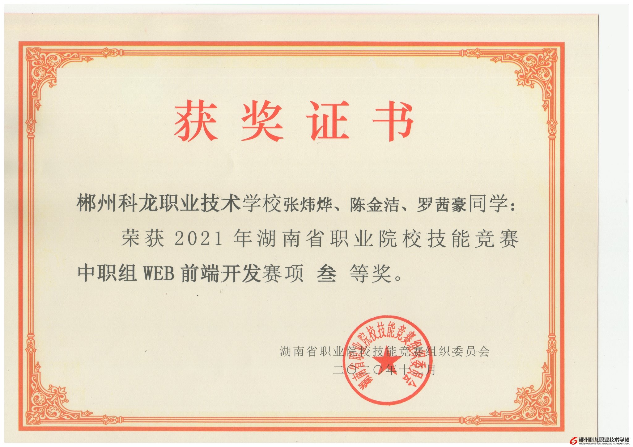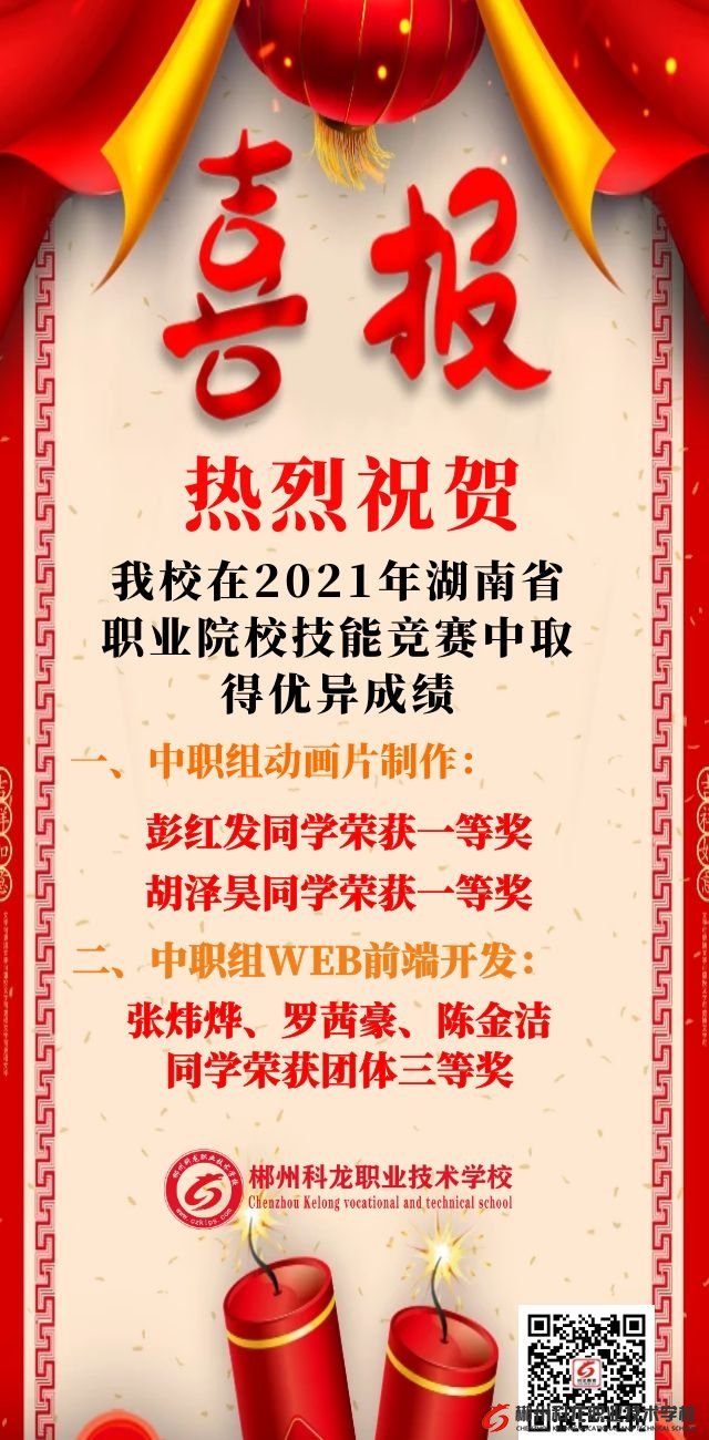 熱烈祝賀我校在2021年湖南省職業(yè)院校技能競(jìng)賽中取得優(yōu)異成績(jī)(獲得2個(gè)一等獎(jiǎng)、1個(gè)三等獎(jiǎng))